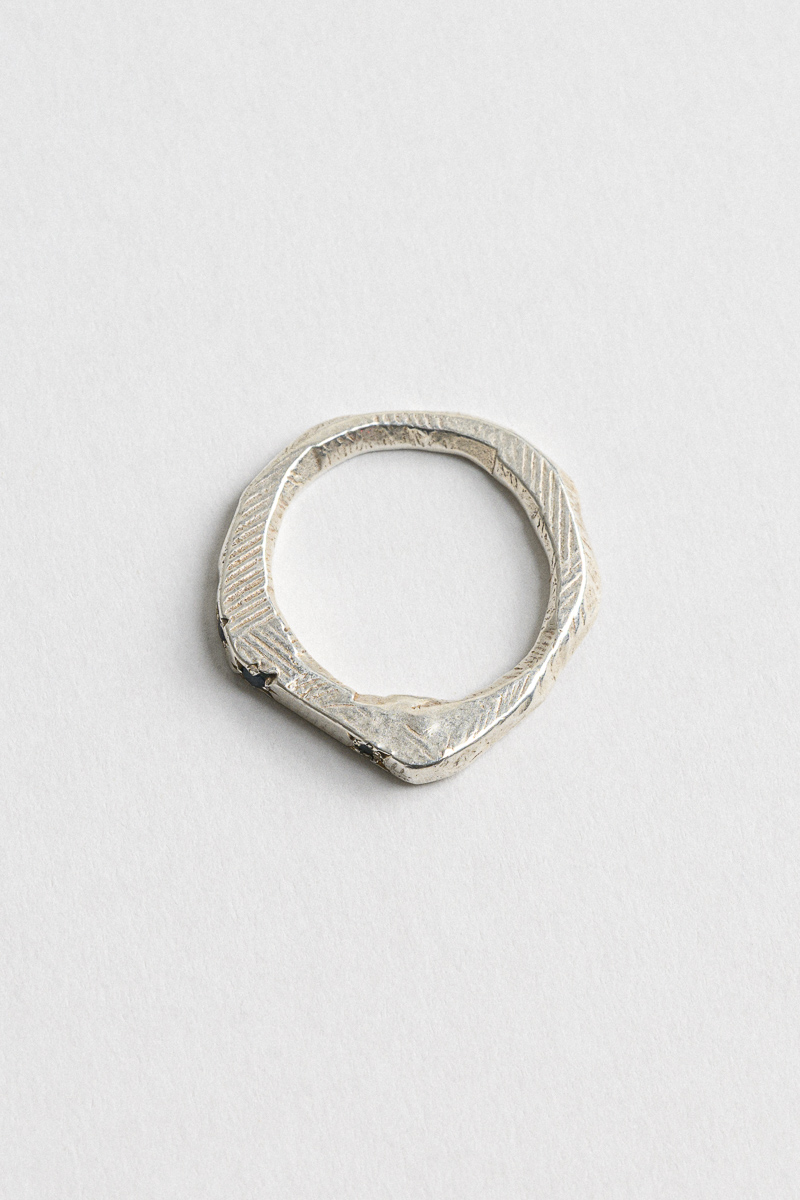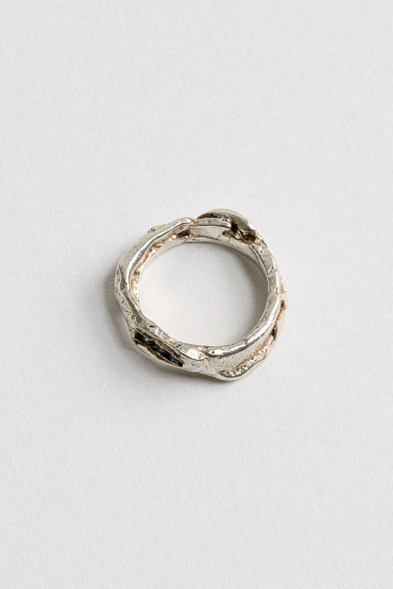 Ring 2025, silver, lost wax cast inset with sapphires $770
