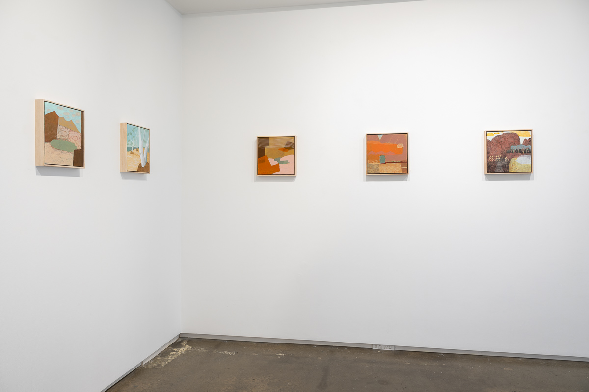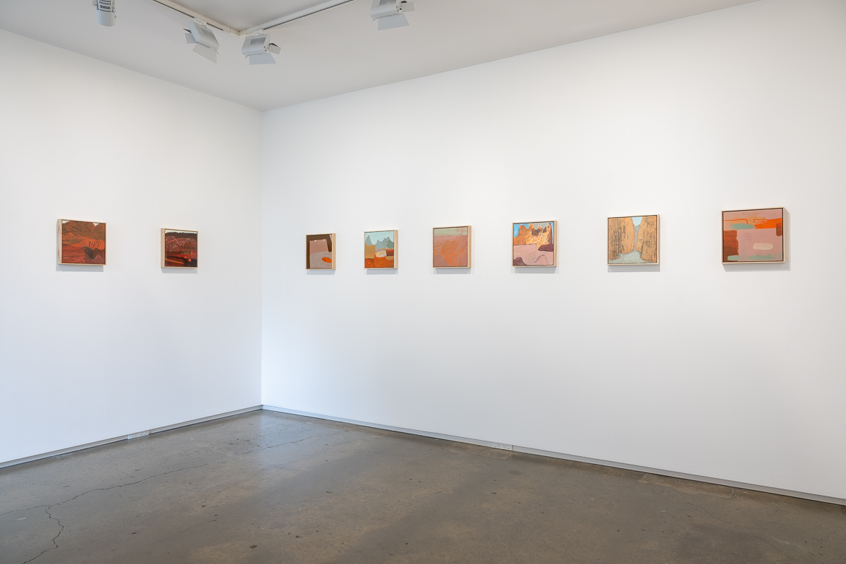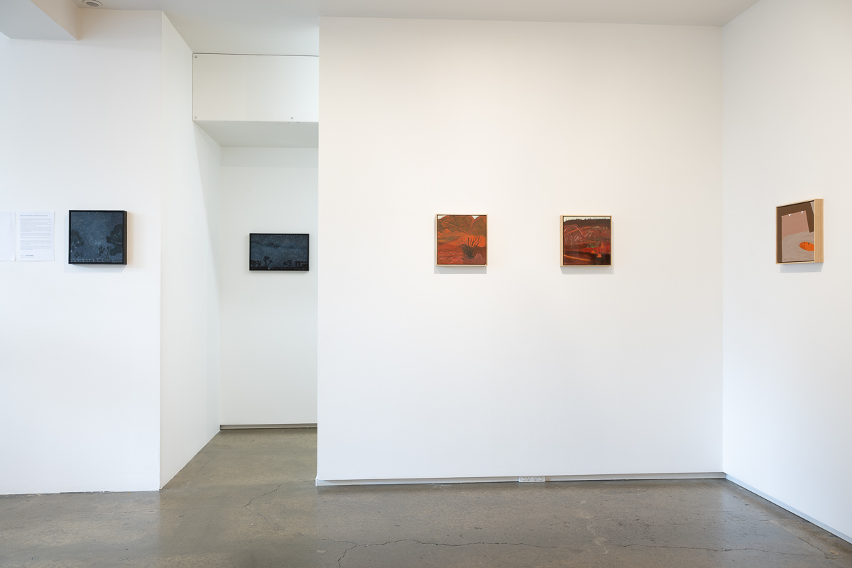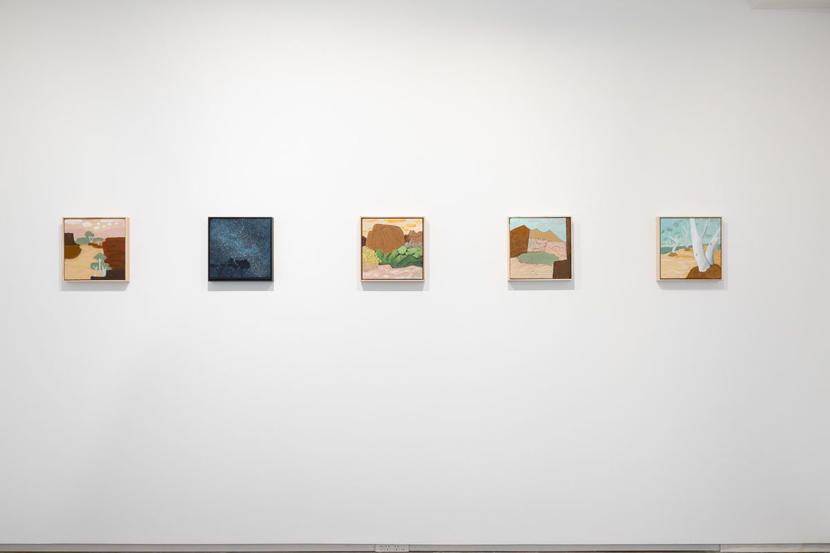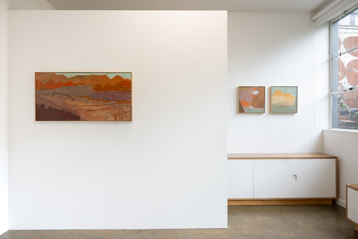 Ultimately, the works in Flight of the budgerigar focus on the aspects of the Central Australian landscape that are the most different from New Zealand: water holes, eucalyptus trees as far as the eye can see, gaps in the ranges with dry rivers running through them, and the sense of the eternal that comes from being in a landscape so little altered over millennia. They are the product of the interplay between the landscape, the painting process, and the artist.