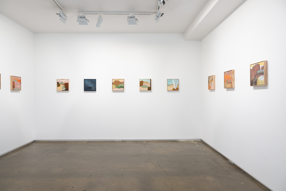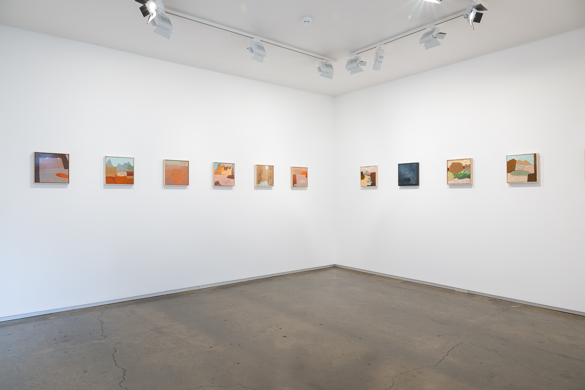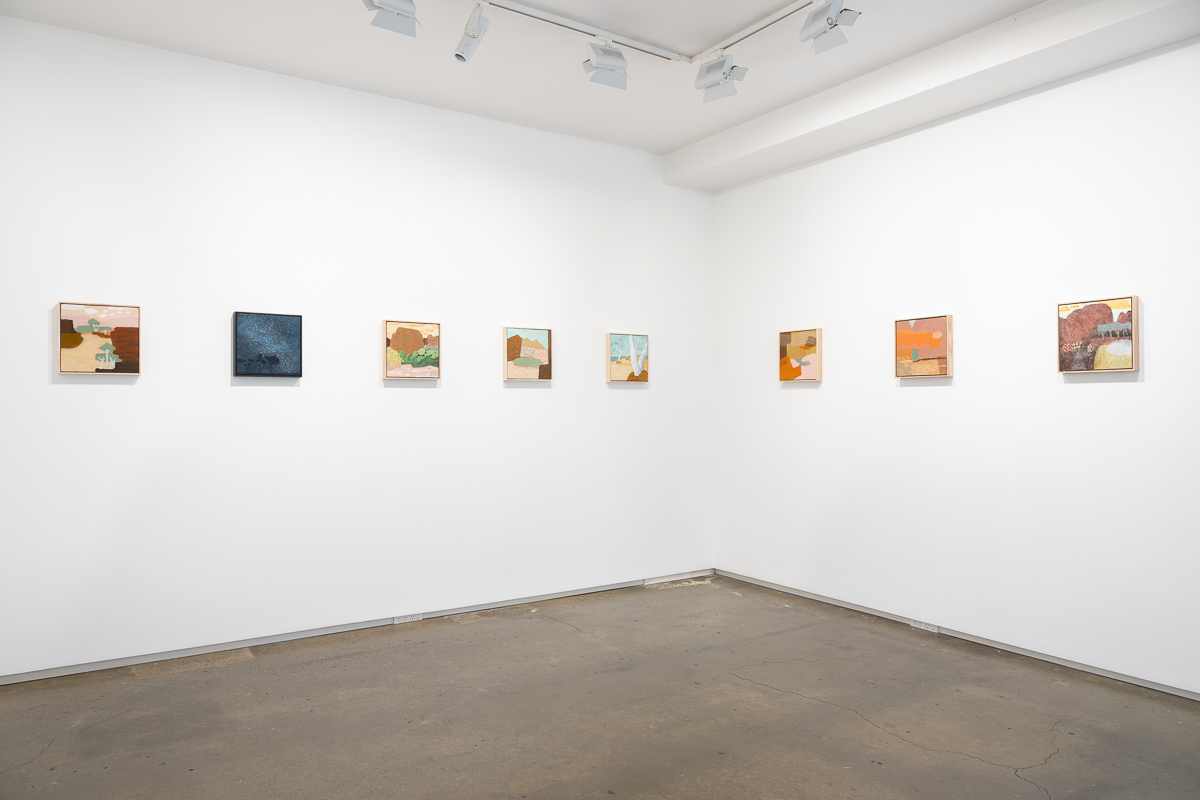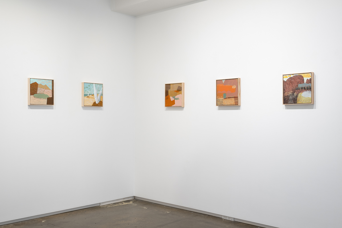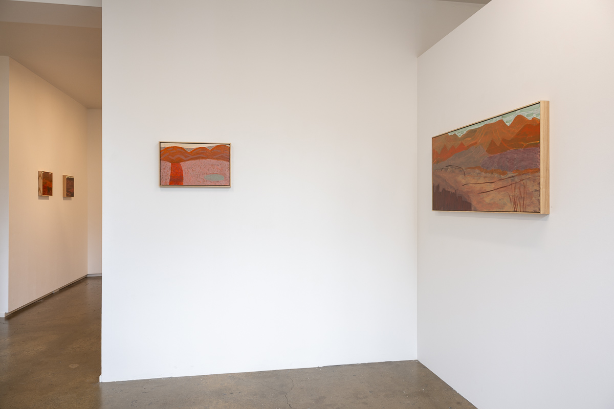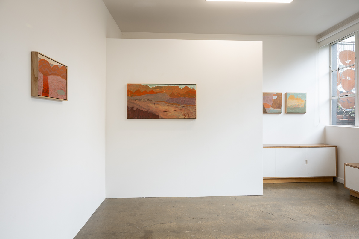 Ultimately, the works in Flight of the budgerigar focus on the aspects of the Central Australian landscape that are the most different from New Zealand: water holes, eucalyptus trees as far as the eye can see, gaps in the ranges with dry rivers running through them, and the sense of the eternal that comes from being in a landscape so little altered over millennia. They are the product of the interplay between the landscape, the painting process, and the artist.