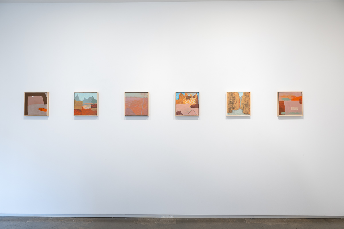Searching for the magic she discovered in work by Australian painters, Jenny enrolled in workshops run by renowned landscape artists Ross Laurie and Idris Murphy, held in Arrernte Country, Central Australia. This part of Australia is home to extreme conditions and unique landscapes, including the amazing geological formations of the East MacDonnell Ranges. These vivid, abstract figurative paintings are the outcome of her time there.